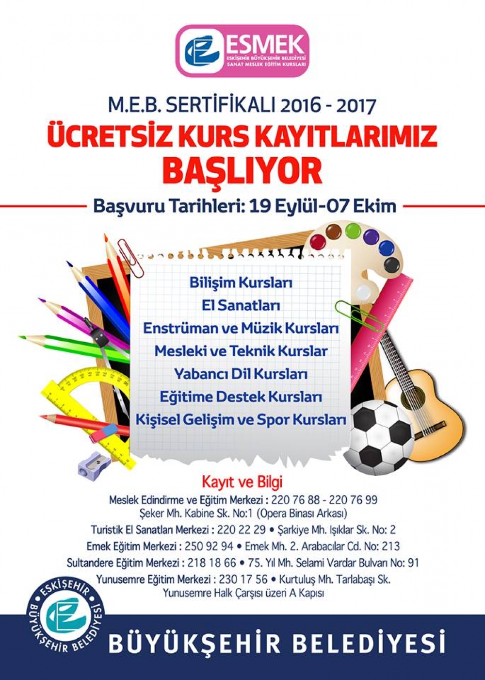 Merkez Adres: Şeker Mahallesi Kabine Sokak No:1 ESKİŞEHİR (Opera binası arkası) Telefon : 0 222 220 76 88 - 0 222 220 76 99