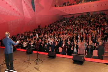 Konserin son bölümünde 10.Yıl Marşını, ellerinde Türk bayraklarıyla söyleyen koroya, salonu dolduran Eskişehirliler büyük bir coşkuyla eşlik ettiler. Konser sonrası Şef Ata Sevin ve Korosu dakikalarca ayakta alkışlandı.