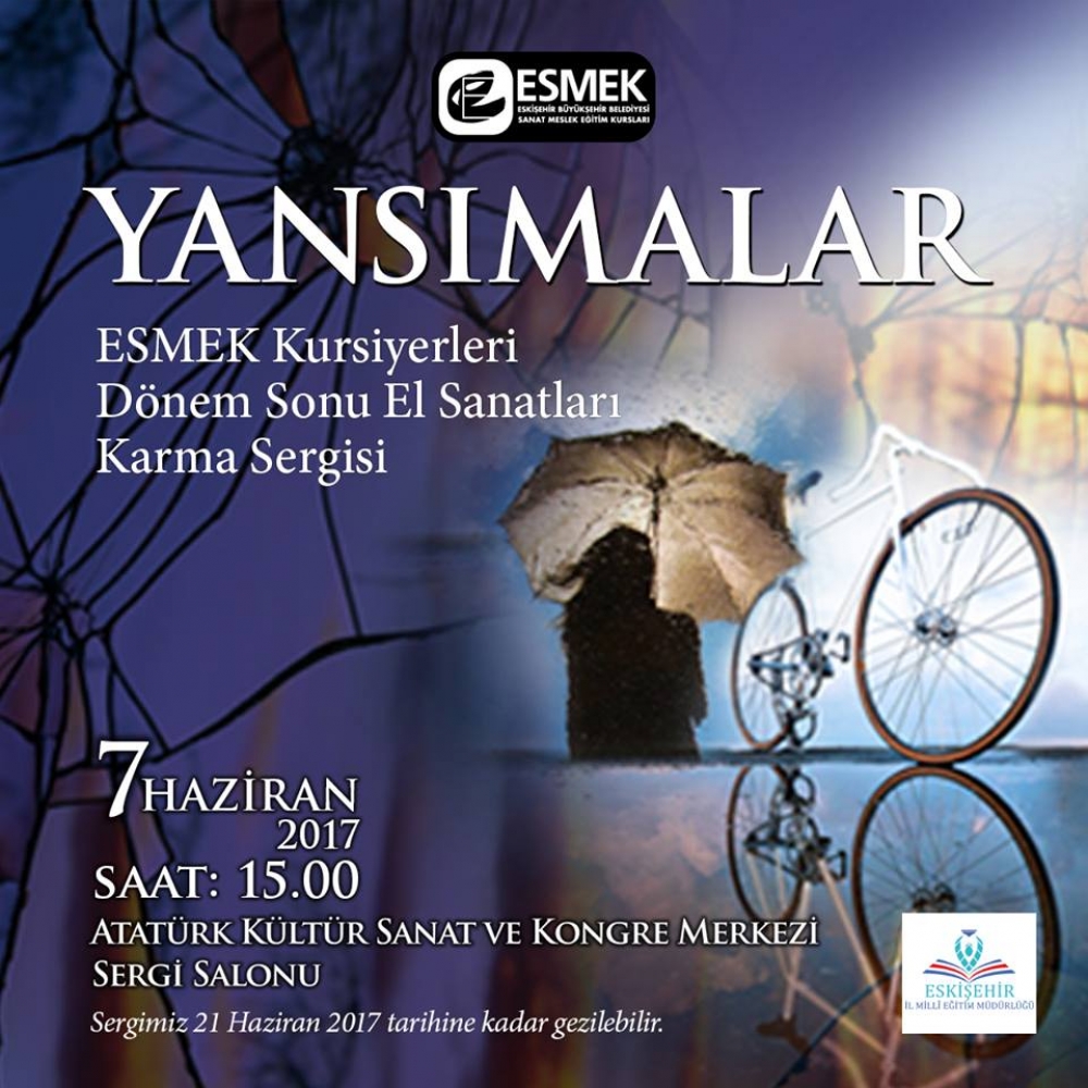 ESMEK Kursiyerleri Dönem Sonu El Sanatları Karma Sergisi7 Haziran 201715:00ATATÜRK KÜLTÜR SANAT VE KONGRE MERKEZİ SERGİ SALONU
