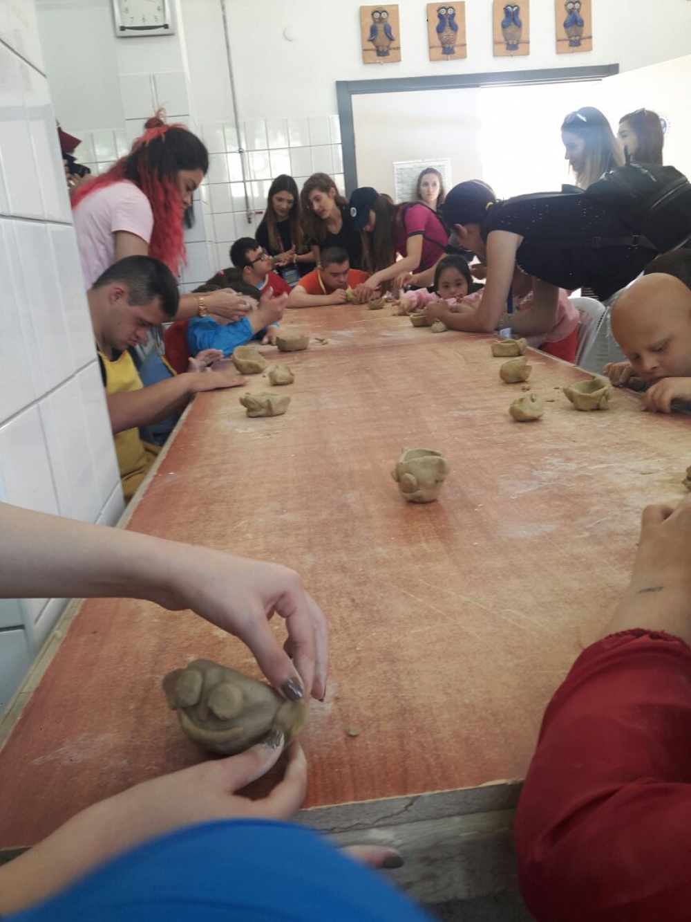 Anadolu Üniversitesi Spor Bilimleri Fakültesi öğretim görevlileri beraberlerindeki Rekreasyon öğrencileri, down sendromlu engelli öğrenciler ile Büyükşehir Belediyesi Sanat Meslek Eğitim Kursları (ESMEK) Seramik Atölyesinde buluştu.