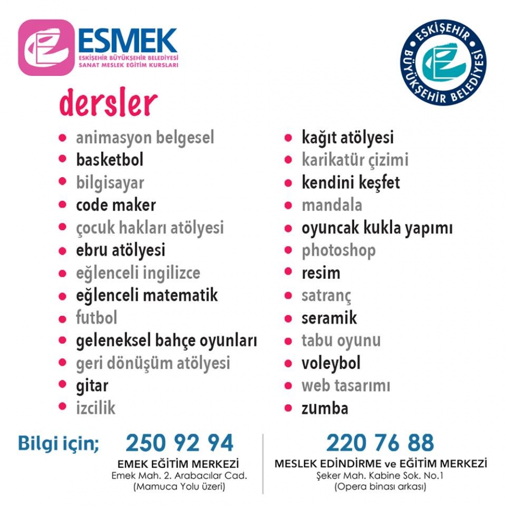 ESMEK Yaz Okullarına kayıtlar başlıyor. Ücretsiz Yaz Okullarında 26 branşta eğitim verilecek.Kayıt: 12 - 30 HaziranDersler: 3 - 28 Temmuz