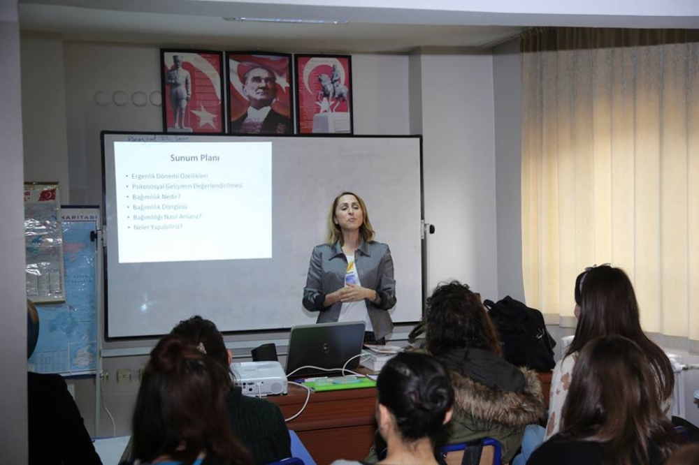 Büyükşehir Belediyesi Meslek Edindirme ve Eğitim Merkezi(ESMEK) İl Sağlık Müdürlüğü işbirliği ile gençler madde bağımlılığı ve kurtulma yöntemleri konusunda bilgilendirildi.