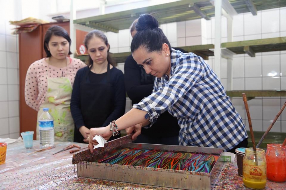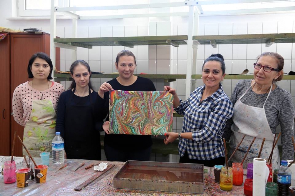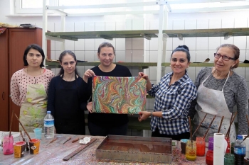 Eskişehir Büyükşehir Belediyesi ESMEK kurslarında, kadınlara ebru sanatının incelikleri konusunda ücretsiz eğitimler verilmeye devam ediyor.