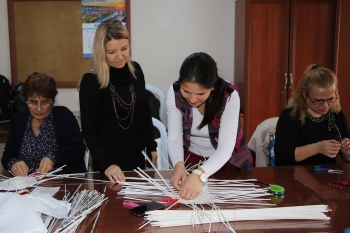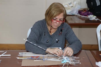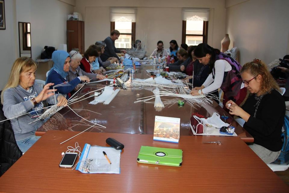 ESMEK’e bağlı Turistik El Sanatları Merkezi’nde eğitim alan kadınlar atık kâğıtları geri dönüştürerek kullanılabilir yeni eşyalar üretiyor