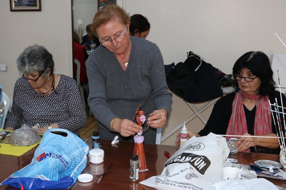 Eskişehir Büyükşehir Belediyesi Sanat Meslek Eğitim Merkezi Kursları Kâğıt Kursu branşında eğitim gören kadın kursiyerler, atık kâğıtlardan sepet, takı, duvar süsü ve tespih gibi eşyayı üretmeyi öğreniyorlar. “Her ev bir atölye olacak” sloganıyla 2001 yılında faaliyete geçen Turistik El Sanatları Merkezi’nde eğitim gören kadınlar, 24 kişilik sınıfta hem sosyalleşiyor hem de el becerilerini geliştirip ürettikleriyle kâğıdın geri dönüşümünü sağlıyorlar.