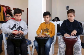 Eskişehir Büyükşehir Belediyesi, Sanat Meslek Eğitim Merkezi Kursları kapsamında çocuklara ritim-perküsyon eğitimi veriyor.