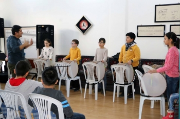 Büyükşehir Belediyesi Yunus Emre Eğitim Merkezi’ndeki ESMEK kursları kapsamında vurmalı çalgılara ilgisi olan çocuklara ritim ve perküsyon eğitimi veriliyor. Uzman eğitmenler eşliğinde grup halinde verilen kurslarda çocuklar aynı ritimde buluşup birlikte hareket etmeyi öğreniyorlar. Eğitim programında kursiyer çocuklara basitten karmaşığa müzikteki zamanların farklı vuruş teknikleri ritim-perküsyon çalgıları eşliğinde öğretiliyor. İki ayrı gruba ayrılan ve yaşları 7-11 arasında değişen çocuklar davul, bongo ve darbuka türündeki çalgı aletleriyle yabancı kökenli pop, samba, küba, salsa gibi ritimlerin yanında mehter gibi türk ritimlerini çalmayı da öğreniyor.