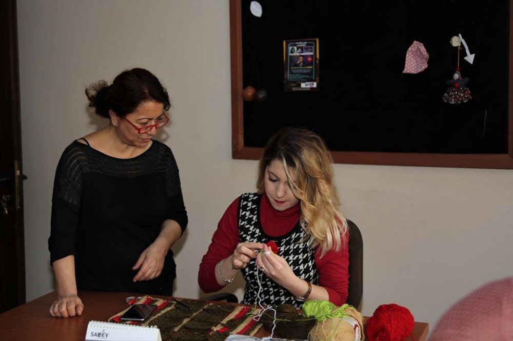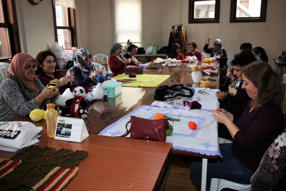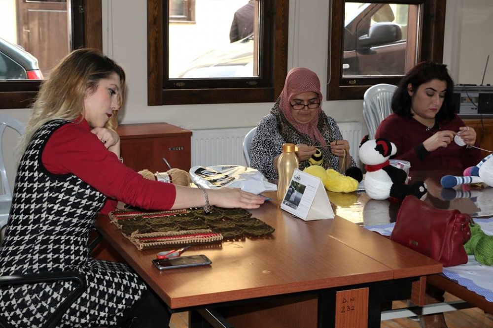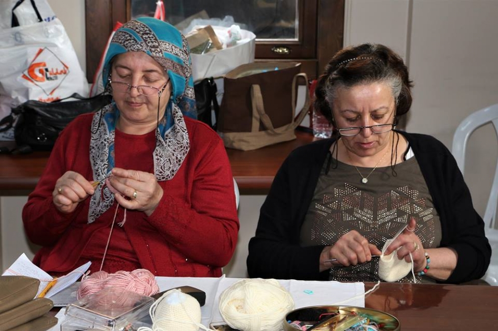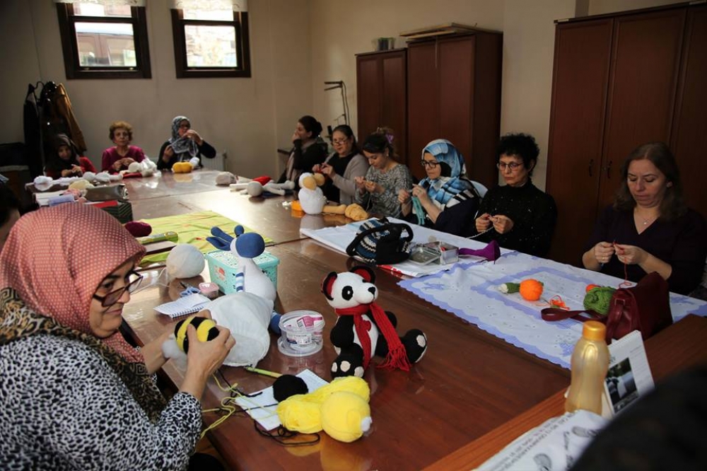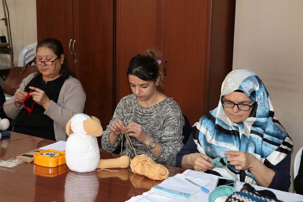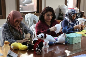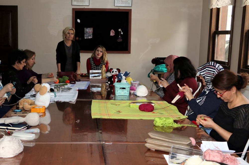ESMEK’e bağlı Turistik El Sanatları Merkezi’nde eğitim alan kadınlar antibakteriyel iplerden örgü bebekler yapıyor.
