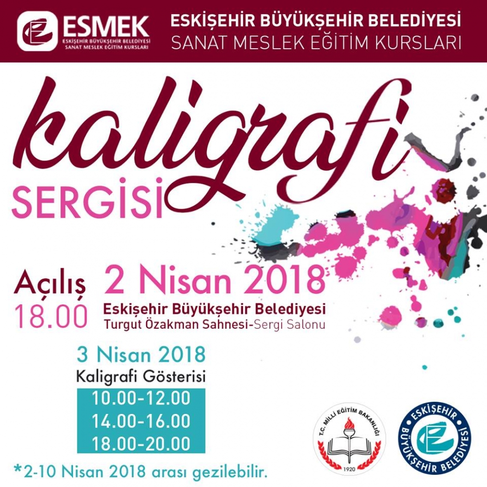 ESMEK Kaligrafi kursiyerlerimizin büyük emekleriyle hazırladıkları Kaligrafi Sergisi ve Gösterilerine tüm sanatseverlerimizi bekliyoruz.