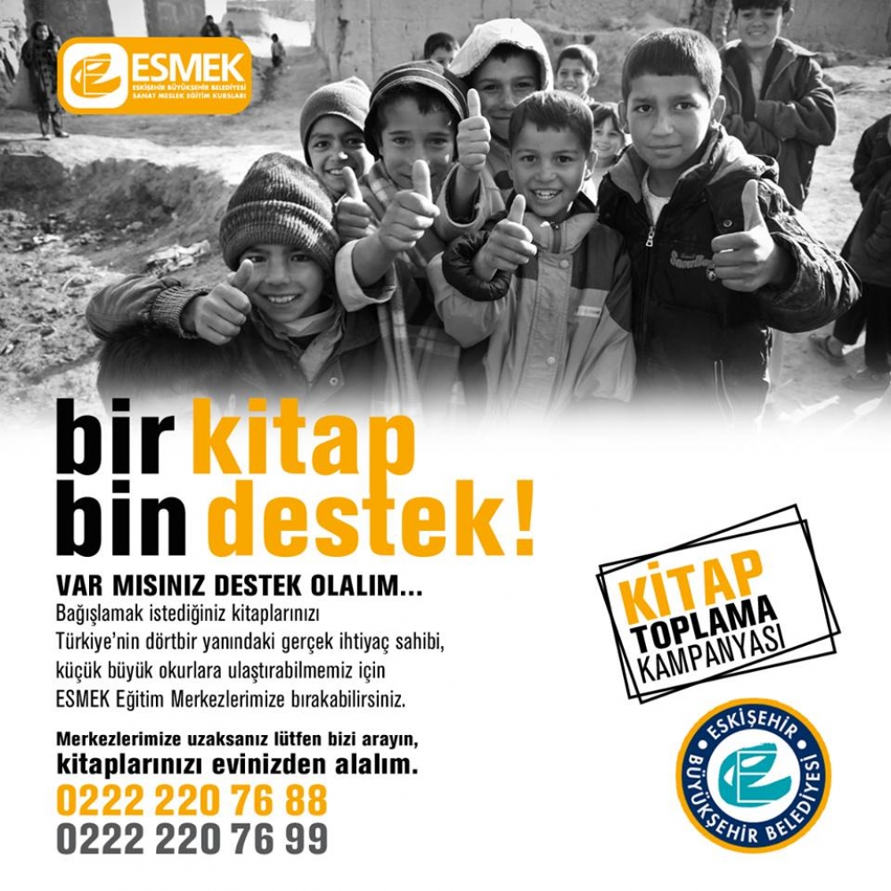 Kitap bağışlarınızı ESMEK Eğitim Merkezlerimize bırakabilir veya 0222 220 76 88-99 üzerinden ilgili birimimize ulaşabilirsiniz.