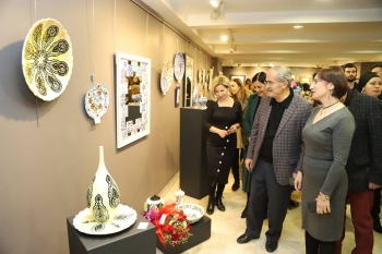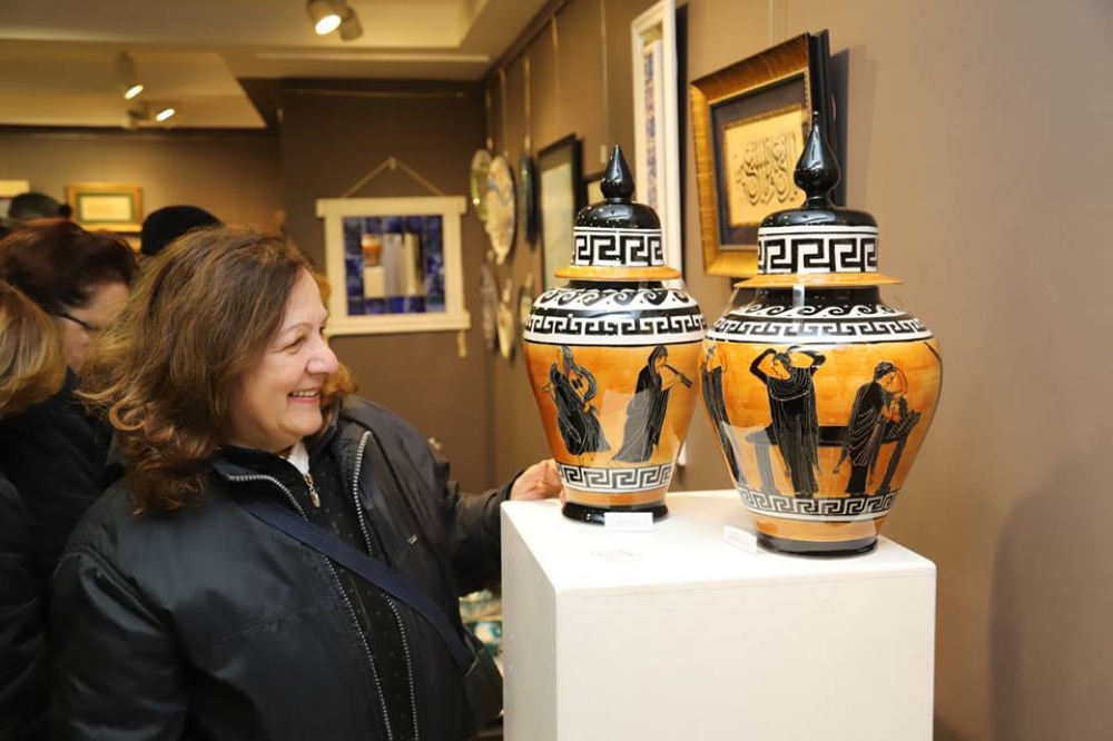 100’den fazla kursiyerin ebru, seramik, çini ve hüsn-ü hat sanatıyla oluşturdukları 300’den fazla eserin bulunduğu sergi 28 Şubat tarihine kadar açık olacak.