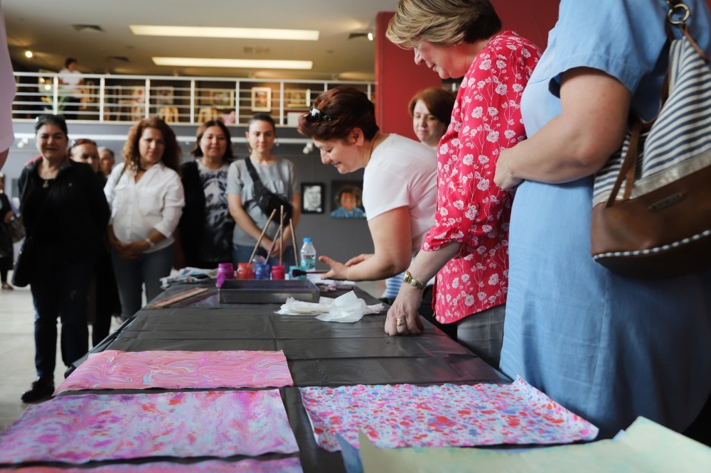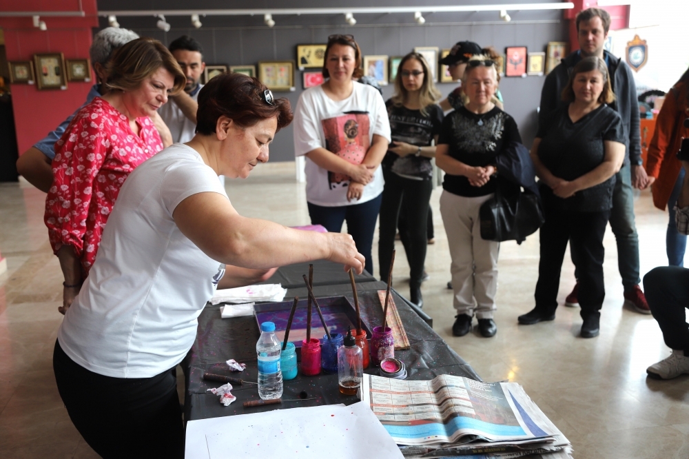 Atatürk Kültür Merkezi Sergi Salonu’nda sergilenen el emeklerini görmeye giden Eskişehirliler 14.00-16.00 saatleri arasında ebru sanatının incelikleri hakkında bilgi alarak ilk denemelerini yaptılar. ESMEK’de yıl boyu verilen kurslar hakkında bilgi alan ve gerçekleştirilen atölye çalışması ile kursları deneyimleyen vatandaşlar, ebru sanatını daha iyi öğrenmek için kayıt döneminde ESMEK’e başvuracaklarını belirttiler.