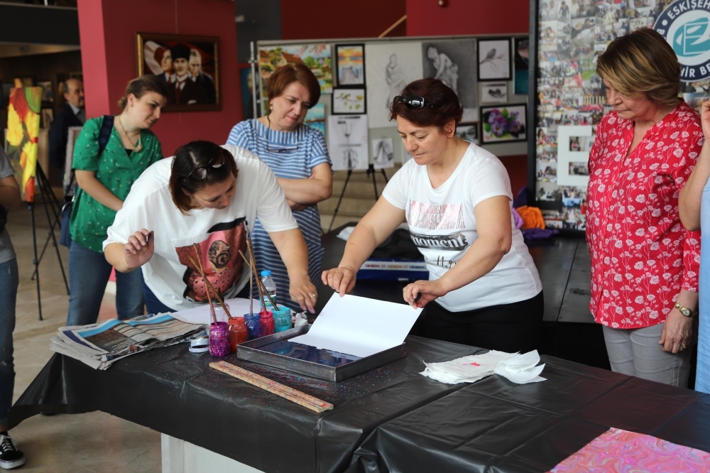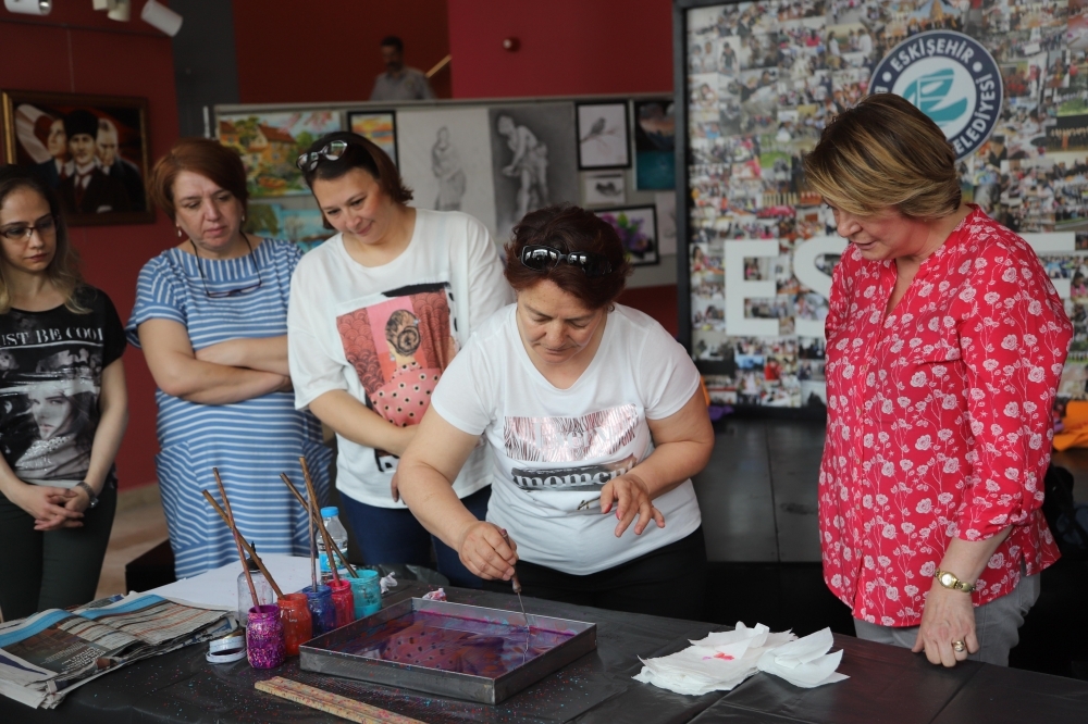 Sergi salonunda bulunan ESMEK yetkilileri gerçekleştirilecek atölye çalışmalarına tüm Eskişehirlileri beklediklerini belirterek, 14.00-16.00 saatleri arasında, 24 Mayıs Cuma günü ahşap boyama ve dövme keçe yapımı, 28 Mayıs Salı günü resim, 29 Mayıs Çarşamba günü kaligrafi, 30 Mayıs Perşembe taş boyama, 31 Mayıs Cuma günü ise temel makyaj teknikleri atölyelerinin gerçekleştirileceğini ifade ettiler.