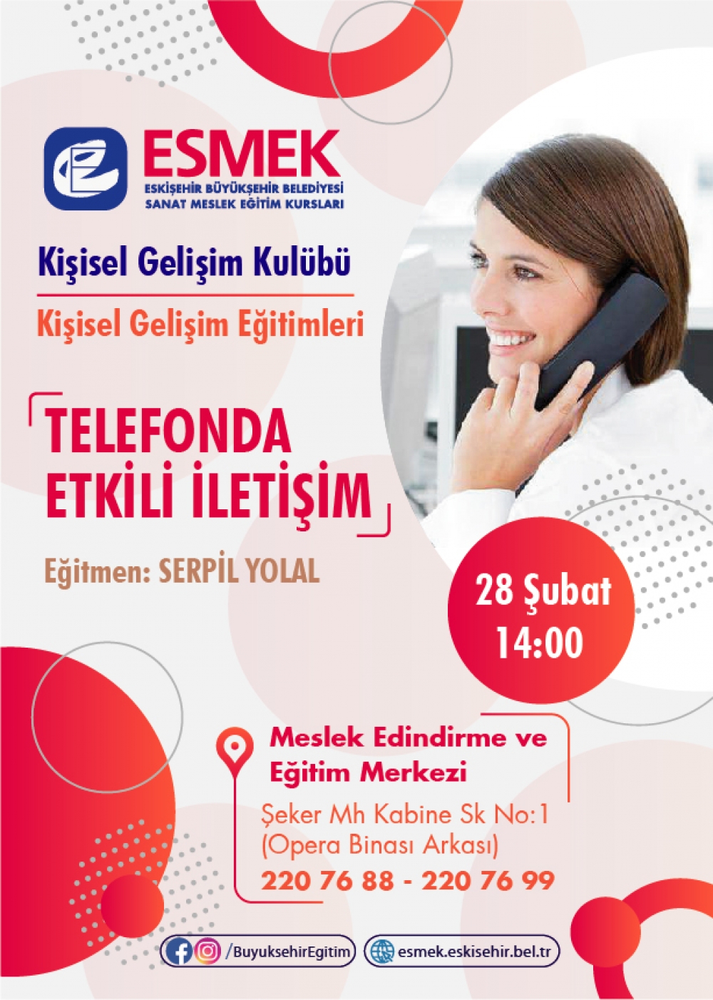TELEFONDA ETKİLİ İLETİŞİM28 Şubat Cuma 14.00-16.00Eğitmen : Serpil YOLAL