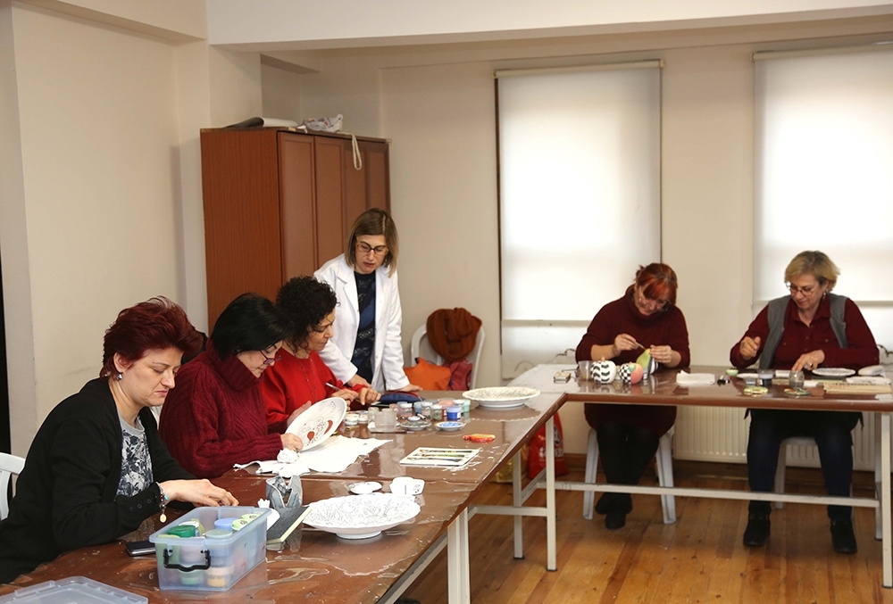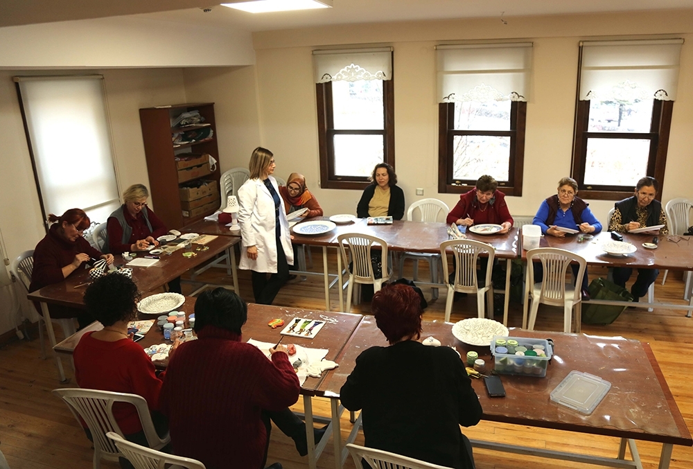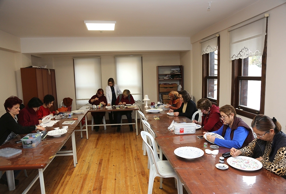 Kadınlar ve çocuklar başta olmak üzere tüm Eskişehirlilerin el becerilerini geliştirebilmeleri, kişisel gelişim sağlayabilmeleri ve meslek sahibi olmaları amacıyla 2001 yılında hizmete başlayan ESMEK’de kadınlar üretmeye devam ediyor. Ücretsiz olarak verilen çini boyama kursunda 60’a yakın kursiyer hem üretiyor, hem de ürettikleri el emeği ürünlerden gelir elde ediyorlar.