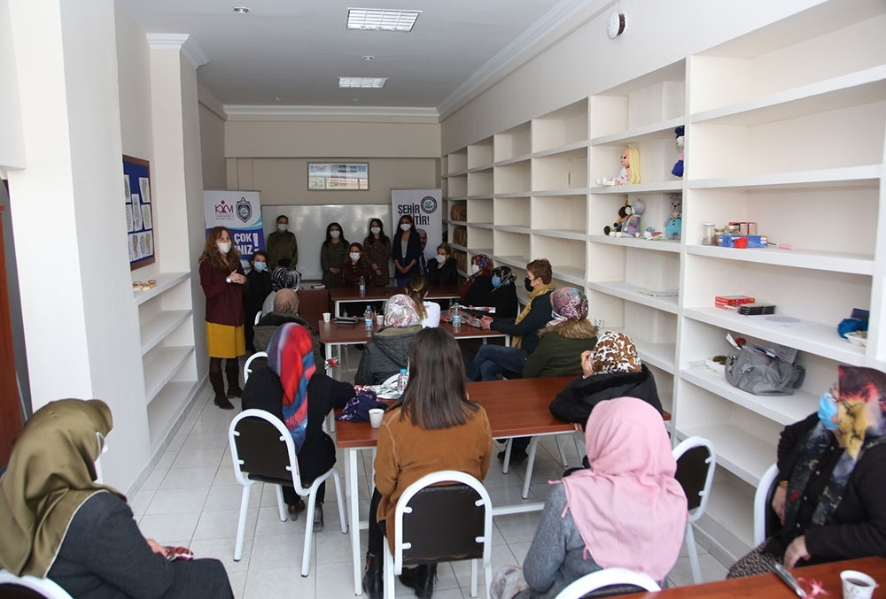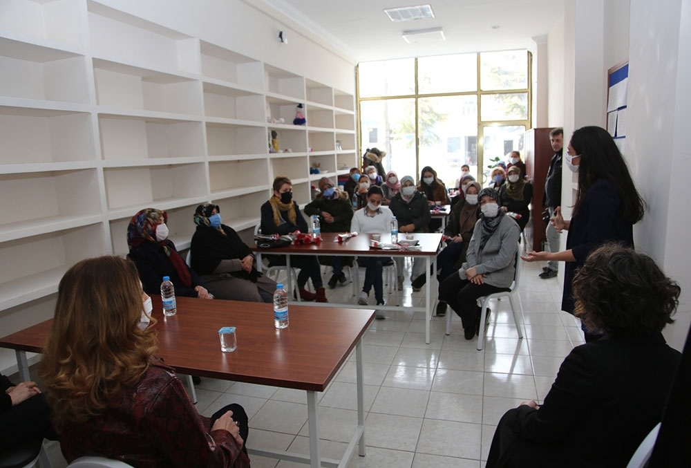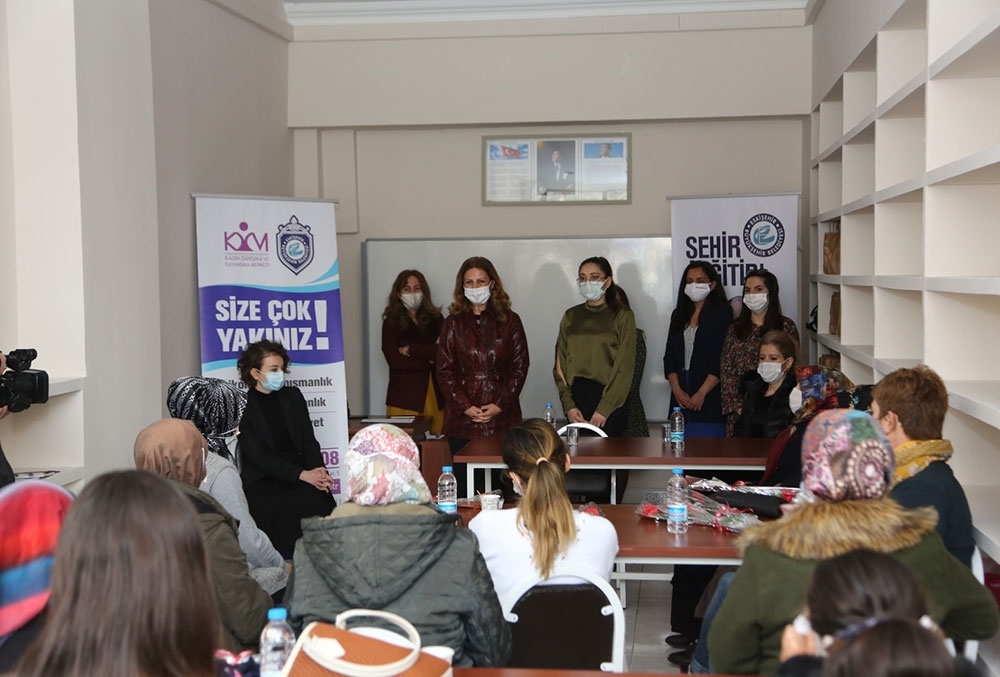 Konuşma sonrası Kadın Danışma ve Dayanışma Merkezi’nin faaliyetlerinin anlatıldığı, kadına yönelik şiddetle mücadele, beslenme ve diyet danışmanlığı, sosyal yardım türleri gibi konularda gerçekleştirilen seminere katıldı.