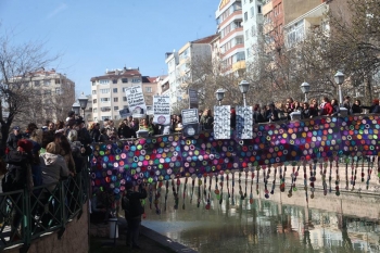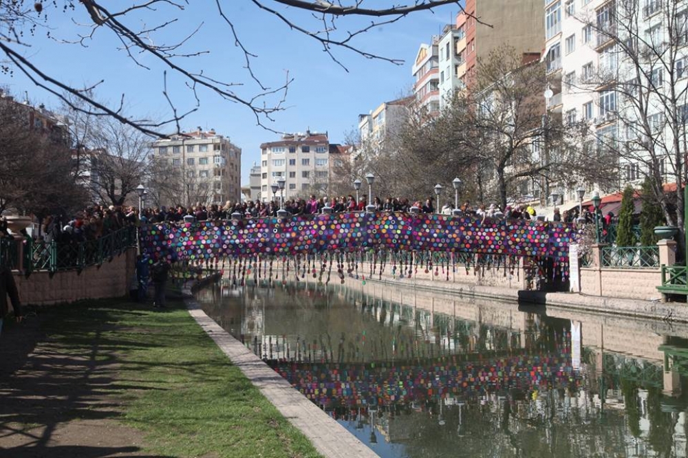 Eskişehir’de 8 Mart Dünya Kadınlar Günü için etkinlikler erken başladı. Bir hafta sürecek etkinlikler kapsamında,‘köprüler örüyoruz’ sloganıyla yola çıkan Eskişehirli kadınlar, büyük emek harcanarak hazırlanan örgü motiflerini Adalar Mavi Köprüye astı.